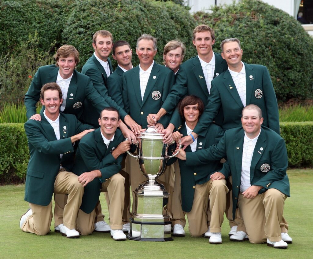 Le noyau dur : Dustin Johnson, Rickie Fowler, Billy Horschel, Webb Simpson, et rappelle l’élément clef qui rend la comparaison indécente : 9 des 10 Américains sont passés pros (l’exception étant Trip Kuehne, resté amateur).